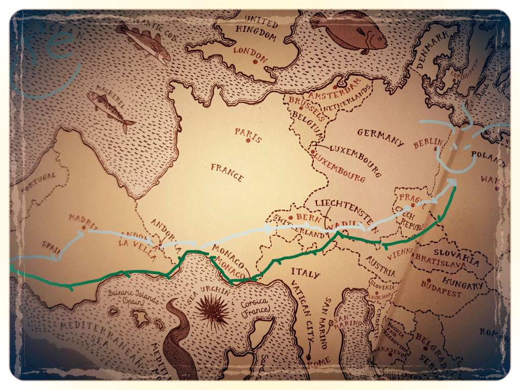 Credits: Partial map of Europe taken from “Maps” by Aleksandra Mizielinska and Daniel Mizielinski; published by BIG PICTURE PRESS, modified. Thanks!