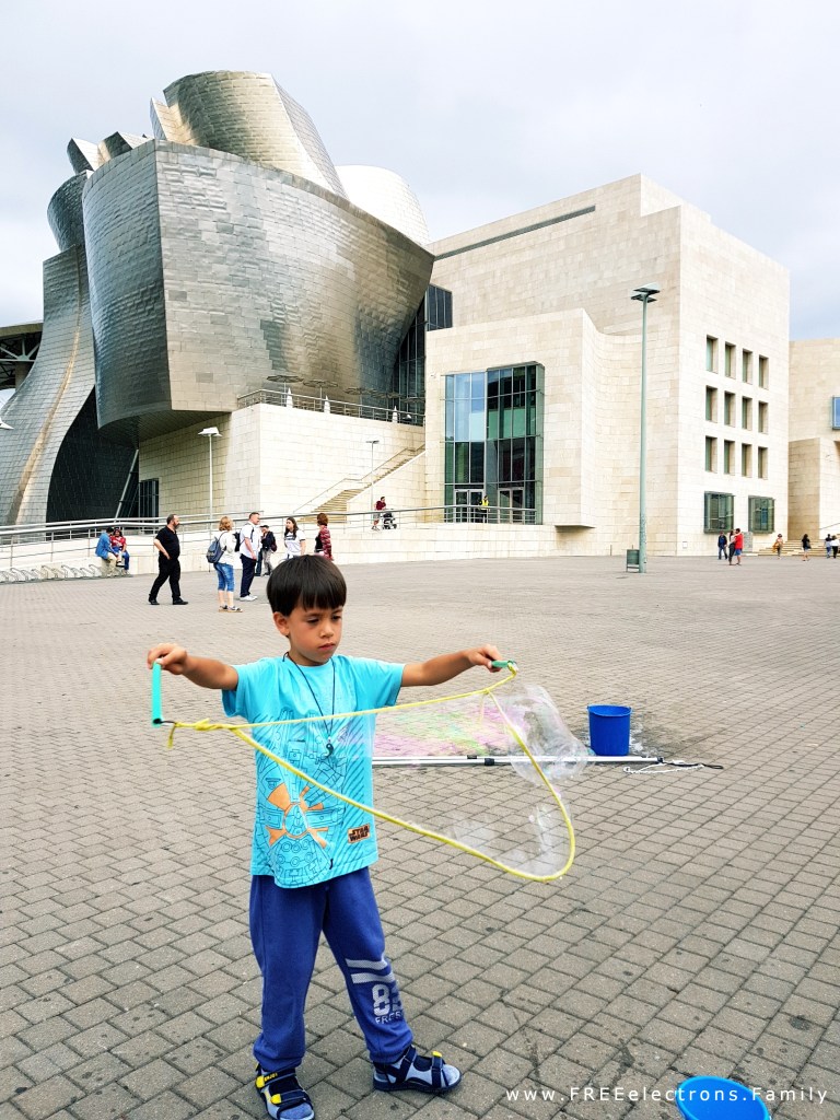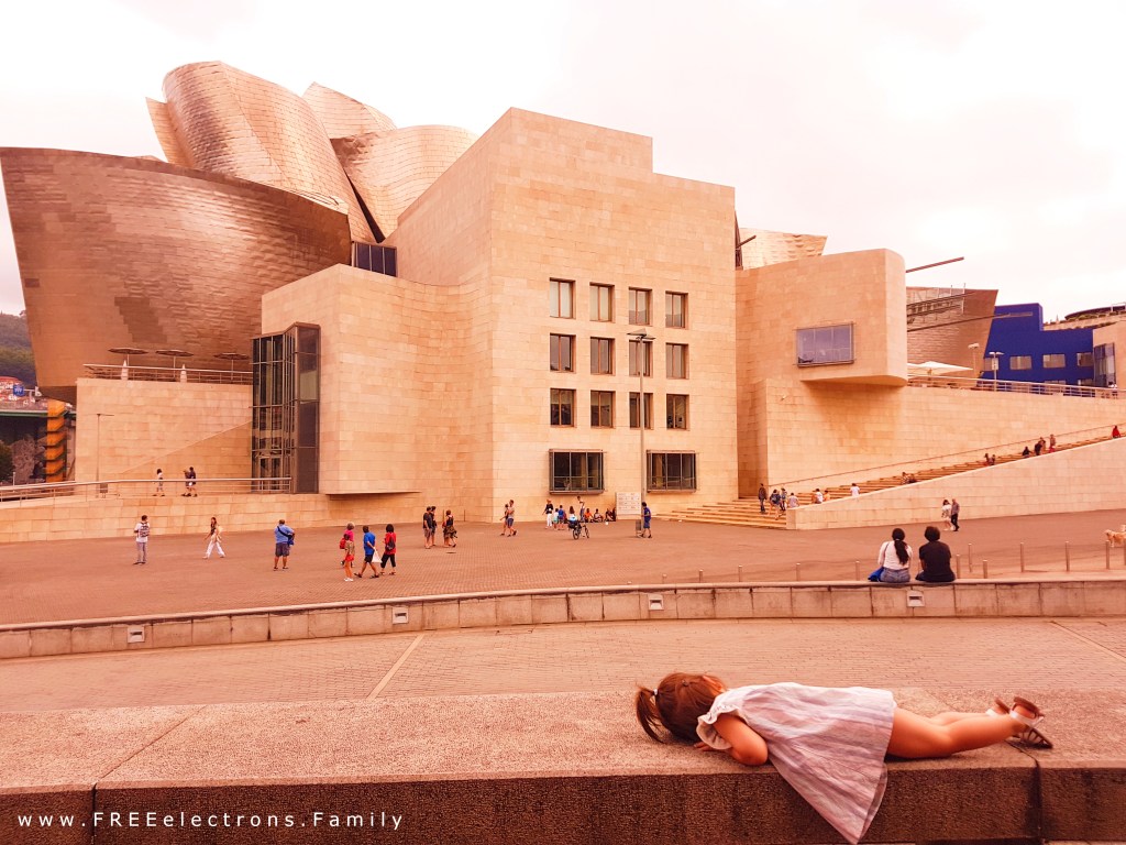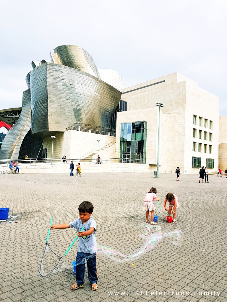 Getting creative in front of the Guggenheim Museum of Contemporary Art in Bilbao, Spain (backtracking a bit, as we did not have the time to post this). Visiting a museum with kids can be fun! We try to expose our kiddos to as many different positive experiences as possible, which includes the places that we would like to see ourselves.