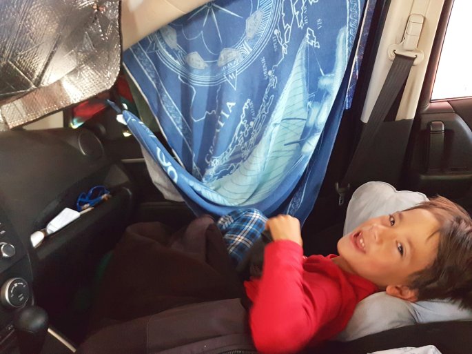 Karol’s roughing-it-training-to-be-“homeless” advances. He enjoyed sleeping in the car with his Tata (Six).