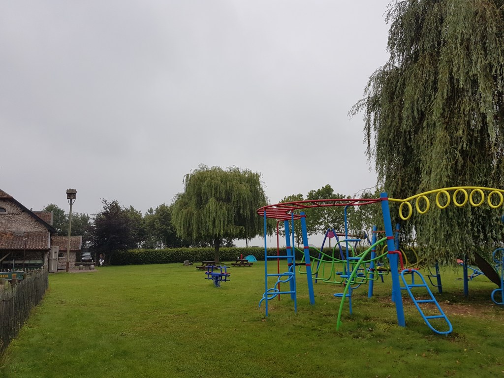 PLAY. Big playground with many playthings, even a zipline from which our 4-year old son fell while playing unsupervised wuth his older brother. So, watch out!