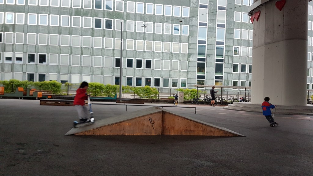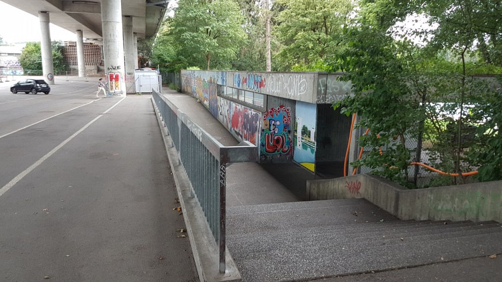 This skate-scooter park under a highway is an example of Bern’s kid-approved, family-friendly urban design. Around this park are 2 railways and a trolley line.
