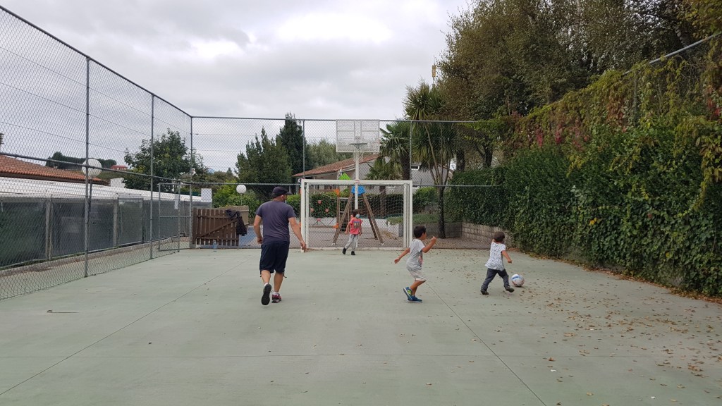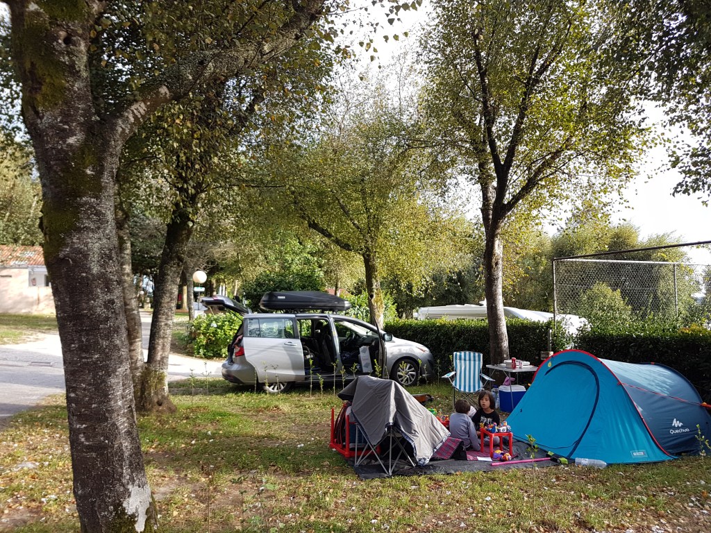 PITCH. How’s the pitch? Compact ground, not soft but NO problem sinking tent pegs. Here in Spain, we begin to see less grass and more ground/dirt on the pitches. It’s big enough to fit a 3-person tent, a car and a more for your eating and playing areas. During our visit we could take as much space as we wanted around us since it was the end of season and there were very few visitors.
