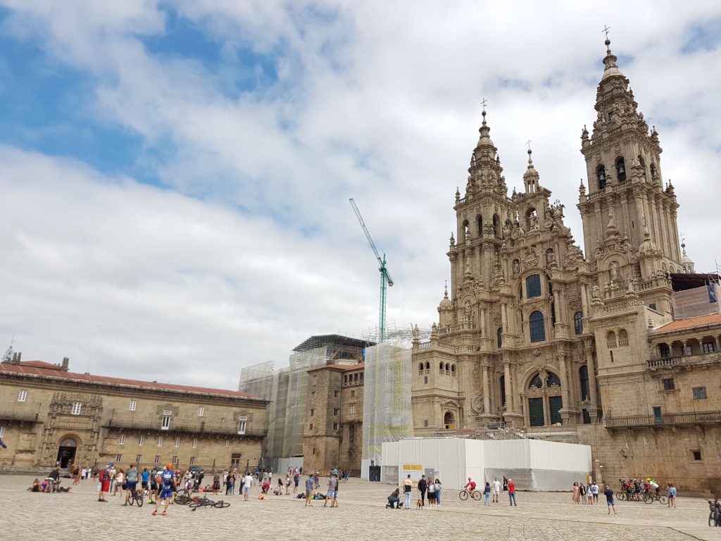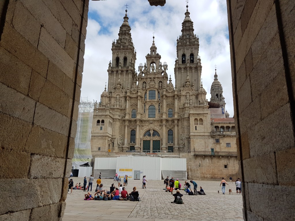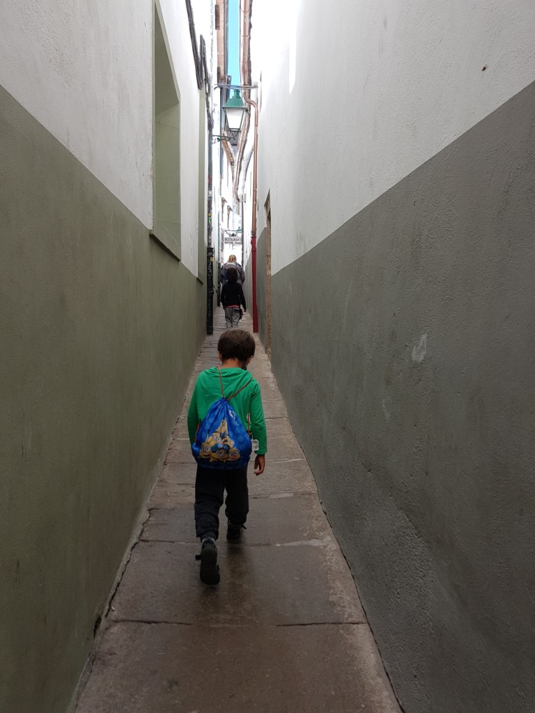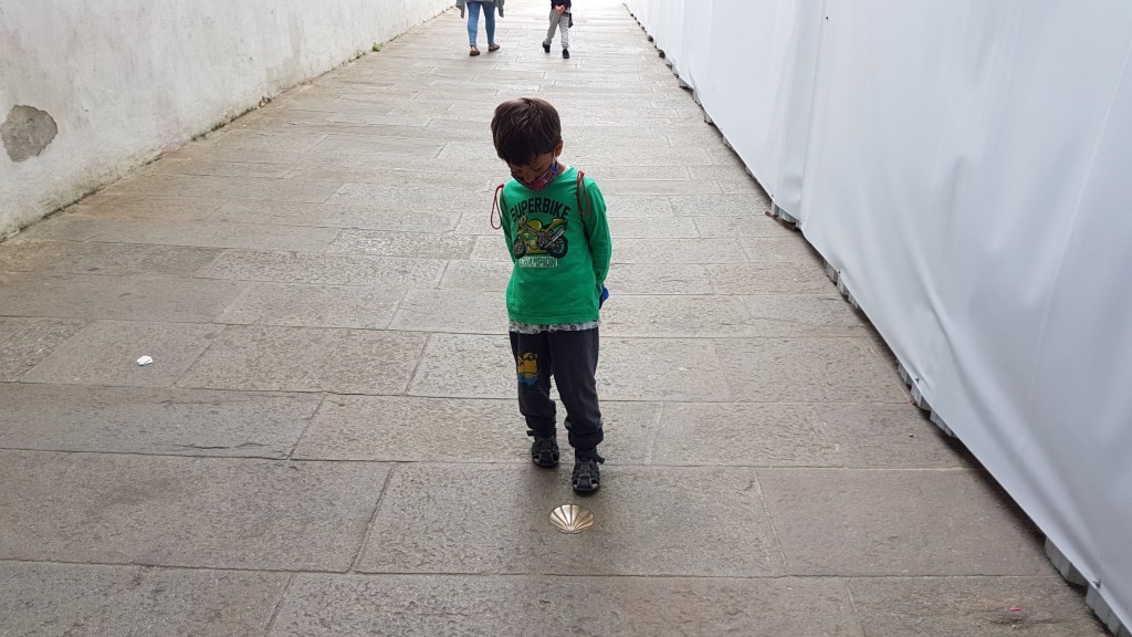 One of us (parents) is religious and it’s the job of the other to support that one and raise the kids together in open manners of the soul and the self. I suppose that’s co-existence. And so here we are finally in Santiago de Compostela–the end point of all pilgrimage routes of the Camino de Santiago whose seashell signs we had seen almost everywhere we had driven in France and Spain on our family camping road trips. Here’s some pictures of our visit to Santiago de Compostela along with a quick review of Camping As Cancelas.