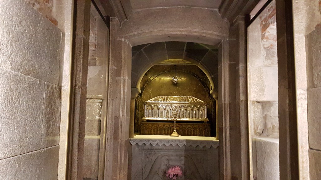 Forty-something years after the death of Jesus, his disciple James apparently ended up here to spread the gospel and therefore began the uphill battle of Christianization of the Iberian peninsula. Supposedly. His remains are within the Cathedral of Santiago de Compostela. Again, supposedly. By the way, he is one of the Catholic Saints.