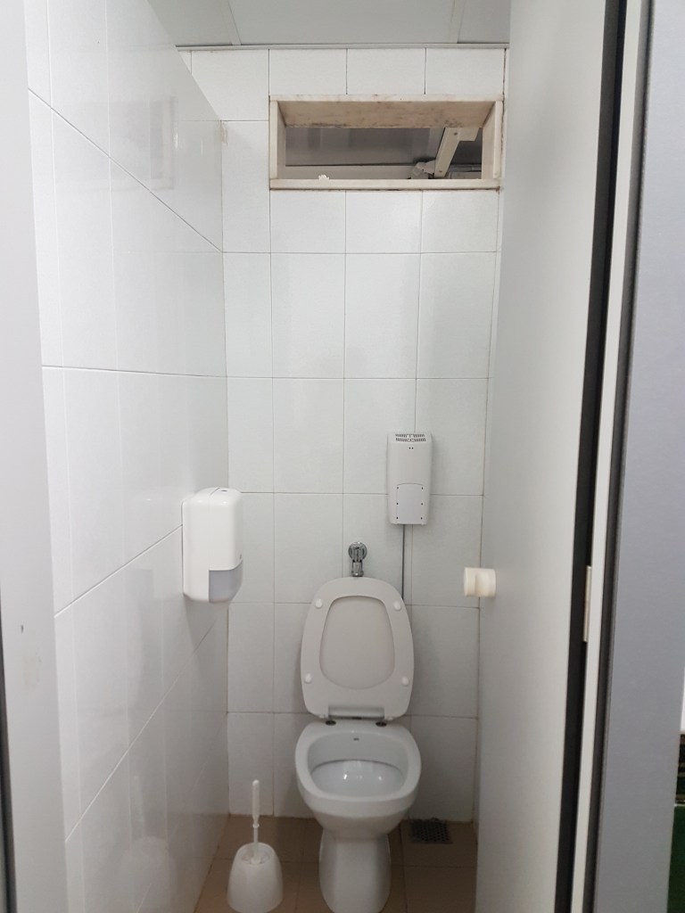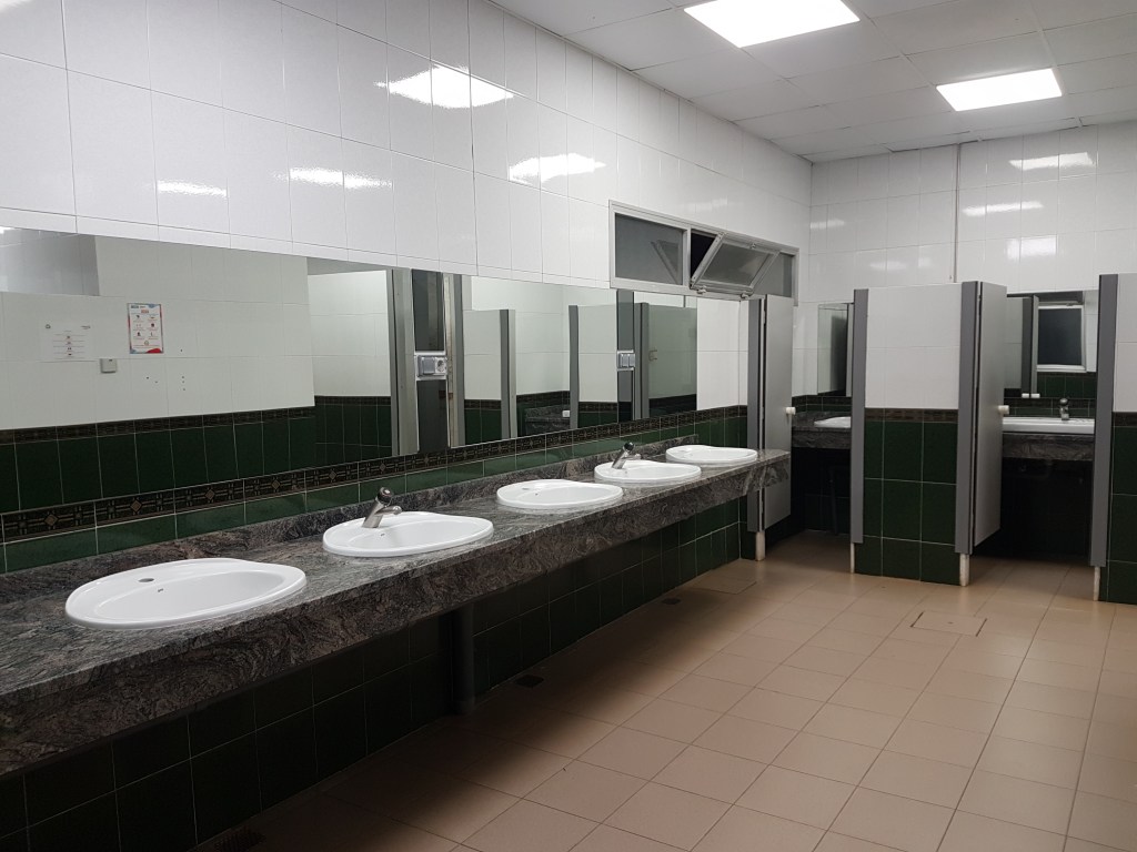 SANITARY FACILITIES. Small spaces but clean with toilet paper. One entrance to each men/women restroom.