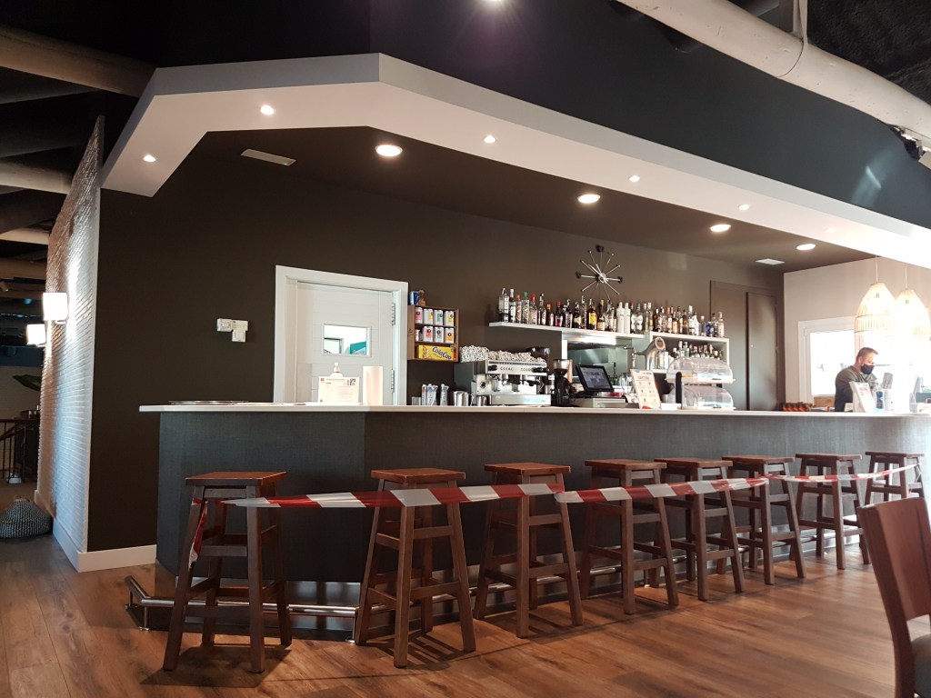 DINE/DRINKS. There’s a bar and a big restaurant next to the reception, with outdoor and indoor seating … but we’re too poor to try it.