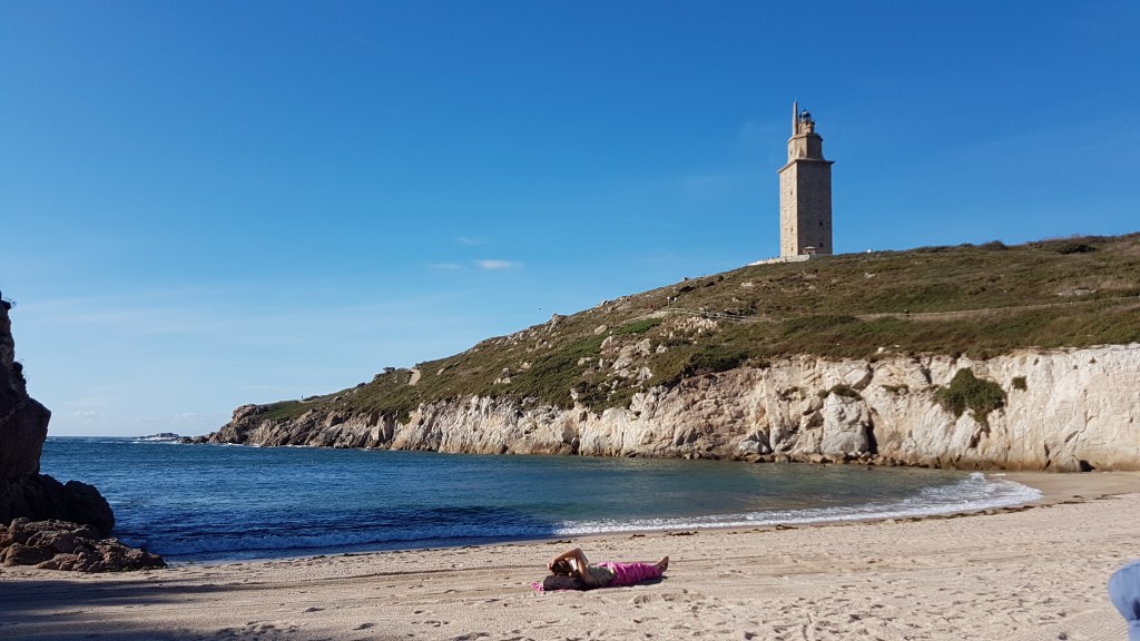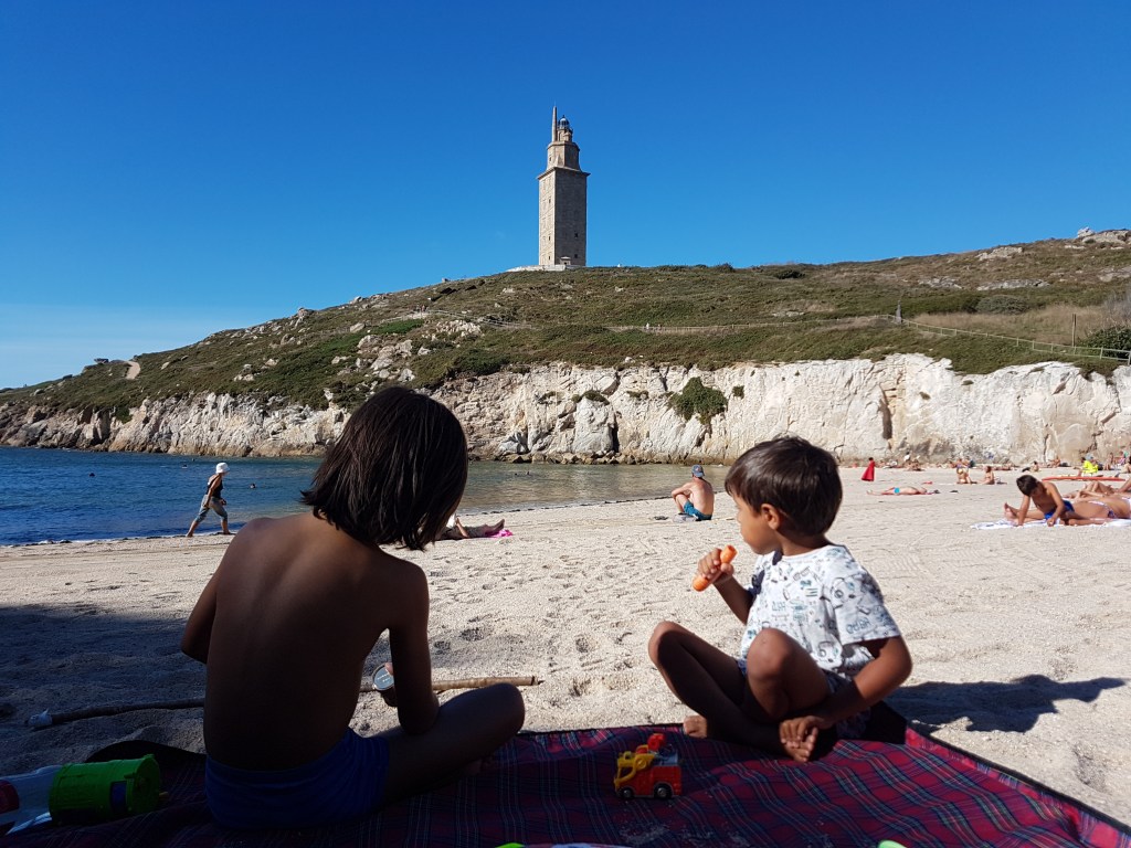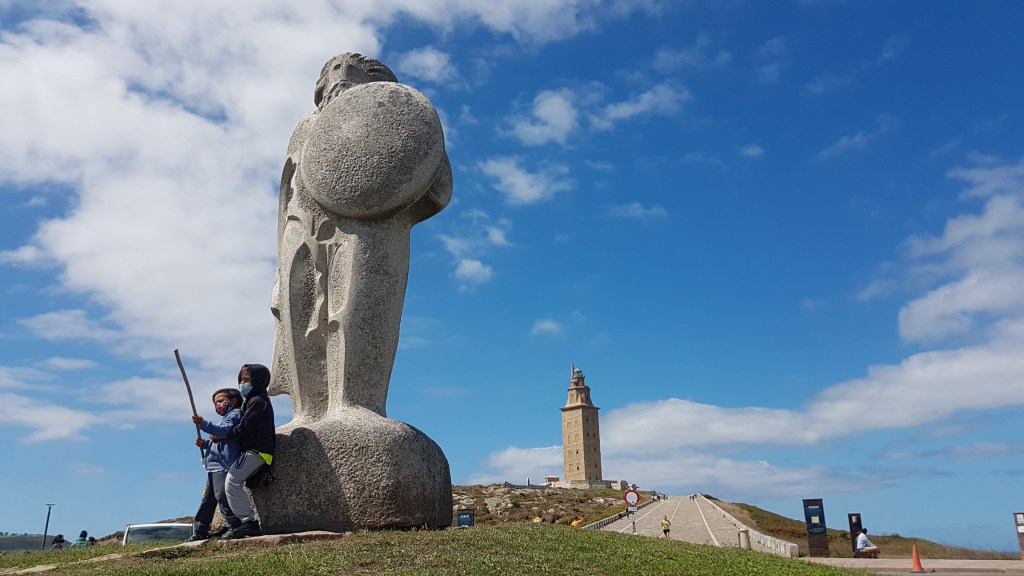 We are usually a slow-go family. However, this time we experimented with (for us) long day trips (read: 1 to 1.5 hour) from our base camping site in Santiago de Compostela to see the Tower of Hercules. Here is our “legendary” visit to the oldest Roman lighthouse that is still in use today in A Coruna in northern Galicia, Spain in pictures.