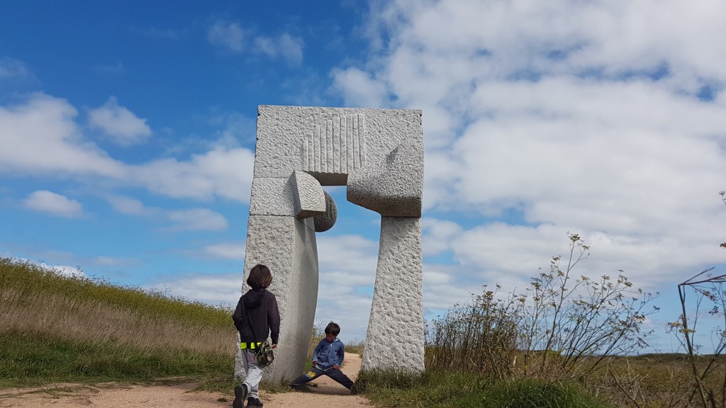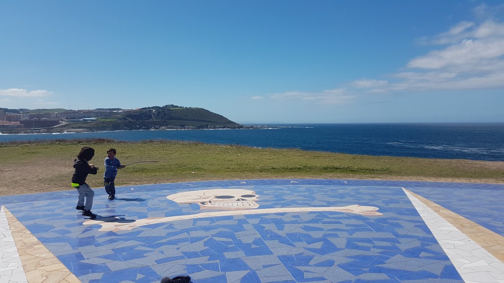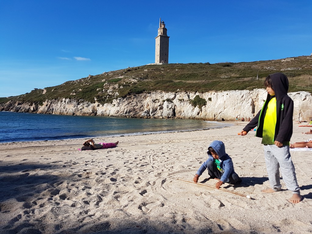 Why A Coruna? Well, the boys are fascinated by Hercules. this city has the Tower of Hercules, several sculptures to remember the legends of Hercules and a Celtic king and the stories of old, and to top it off. . . some beach time, right down the cliff! Here it is in pictures.