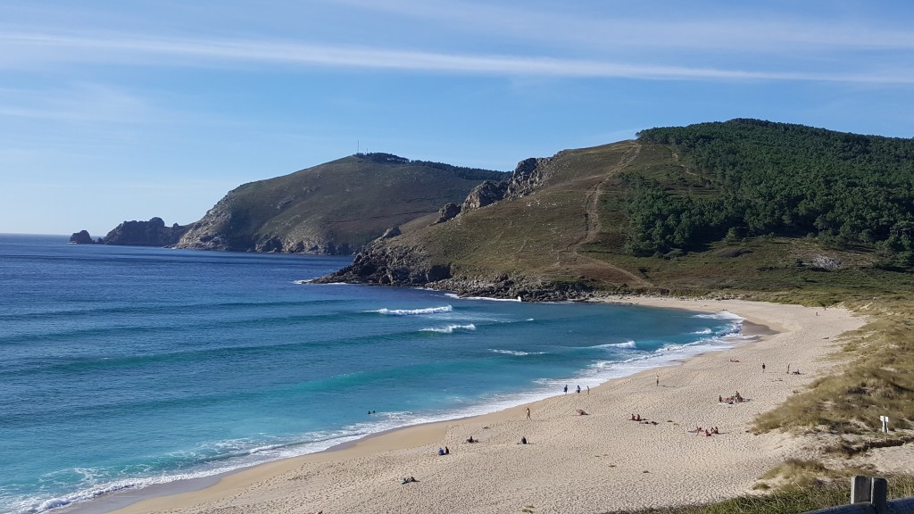 After a kilometer walk from our position at the the beach at Praia Mar de Fora, we drove from Fisterra to Santiago de Compostela. Fisterra is about an 1.5 hours from our base campground in Santiago de Compostela .
