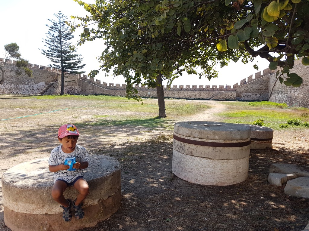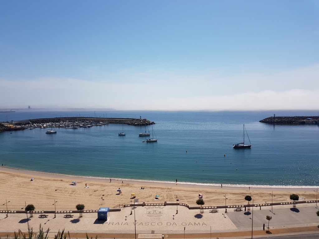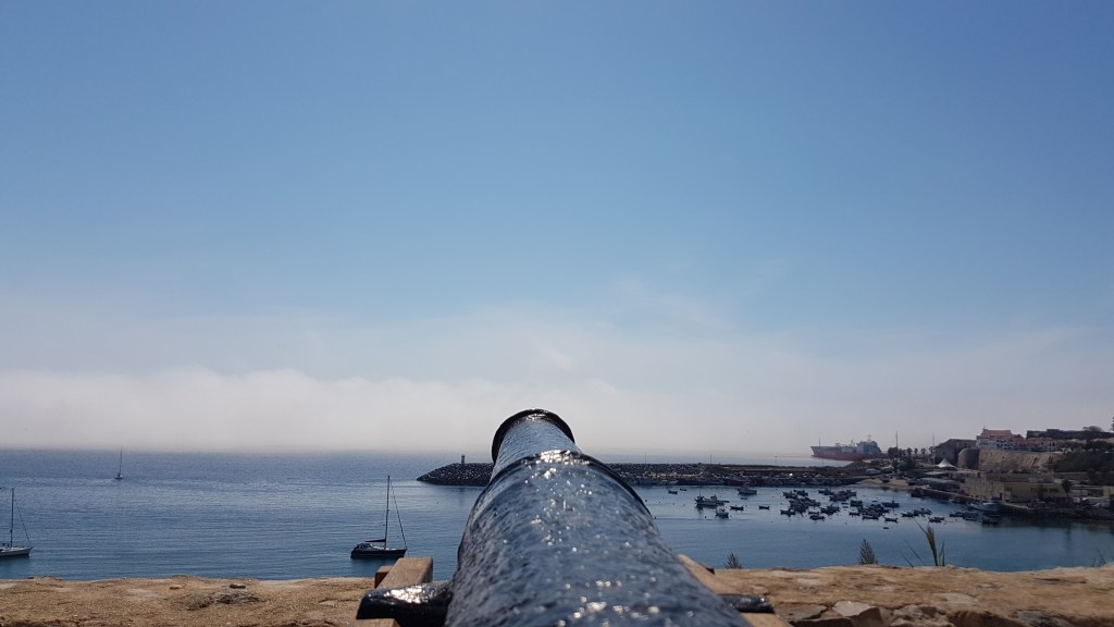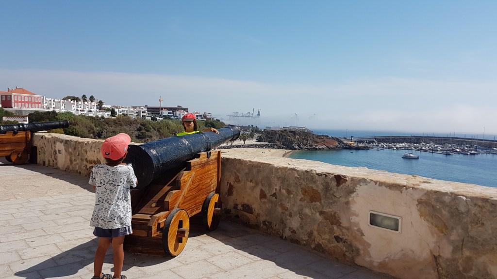 Overlooking the small but sufficient beach of Praia Vasco da Gama from the defensive walls of the Castle of Sines.Battlement canons at the lower part of the defensive walls of the Castle of Sines.A walk around the well-kept castle walls; port for recreational boats just below and big-ship terminals far background.“Pirates!,” yelled out Kaj …and the “smoke” in the distance added effects to their game. “Ready. Aim. Fire!,” Karol ordered.Local architecture in the old quarter of Sines, Portugal. Snacking on castle grounds, Castle of Sines, Portugal.Mists rolling in over Sines beach; cargo ship terminal in the background.The Castle of Sines that was once the residence of Da Gama family… There’s no castle, really; just the tower. Apparently the white houses are private properties but the wide open castle grounds and the walls are open to the public for FREE.Always finding time to swim in the Atlantic ocean: the cold, wild and windswept beaches of the north, the small but clean and sufficiently fun beach of Vasco Da Gama was a welcome surprise–surprise because it did not even look like a “proper” beach on GMAP.Coming down the Castle of Sines into the warm embrace of the beach of Vasco Da Gama.The warm and surprisingly clear water of this protected beach looked like shimmering with gold flakes. The breakwaters in the background with the lighthouses on either provides for a calm harbor/beach. Mist began rolling in before sunset. The boat in the middle (from Norway) prepared to leave before was caught up in it. Then, the mist moved inland quickly. Time to go!