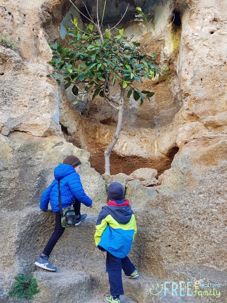 The boys play Roman warriors while the eyes on the walls (shaped by ancient Phoenicians for reasons that have been lost with time) watch in silence.