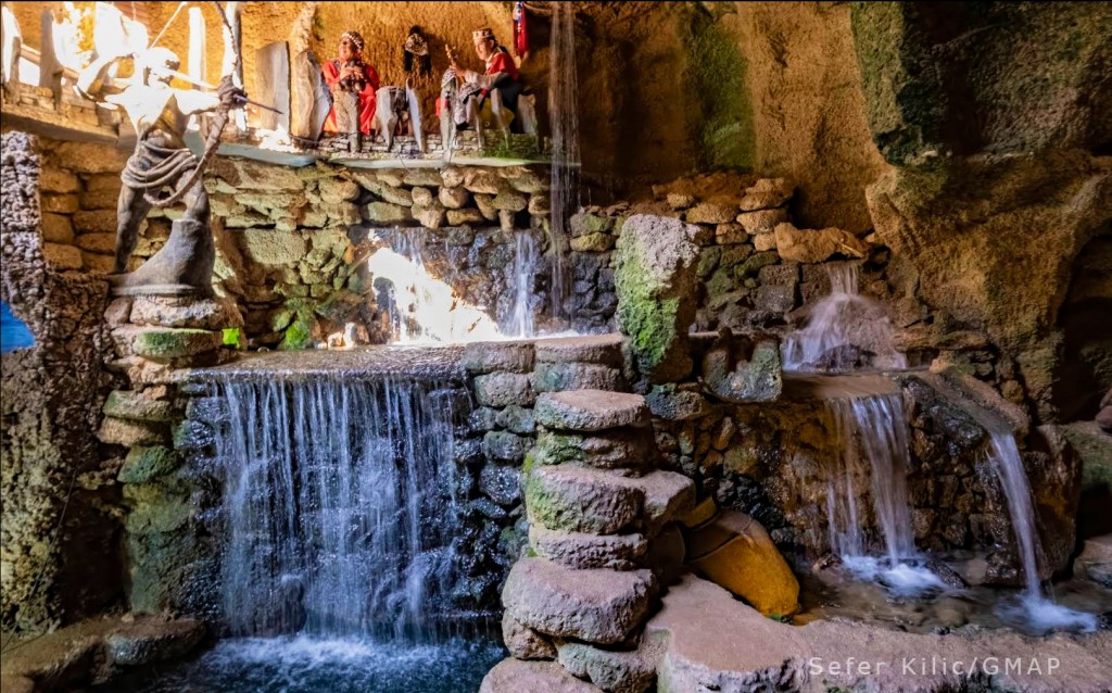 Fishermen brave the crashing waves at the rocky shore of Hercules’ caves. You can see Achakar beach beyond the walls. The other, paid and rather kitschy-ly decorated cave. Photo credit: Sefer Kilic/GMAP.This wave was a small one. Waves would actually crash into the rocky shore all the way to where the people are sitting on the right.