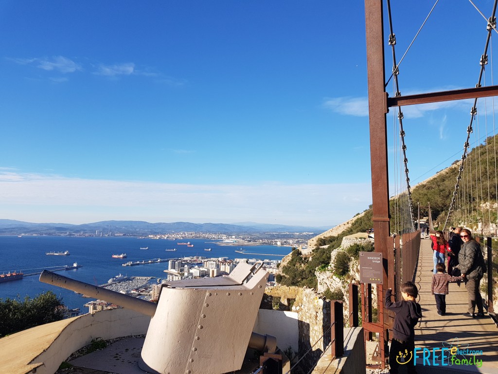 Family Travel Tip: Take the cable car to the top and walk down (we called it hiking/trekking and gave ourselves a pat on the lower back. Here shows one of the many batteries (canons) that surround the rock. This is Windsor’s hanging bridge that was a thrill to walk on for the kids!