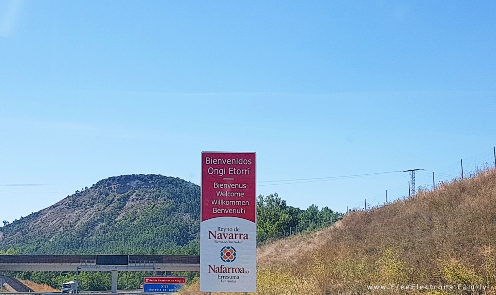 On the other side of the mountain, on the French highway N134 and the Spanish E-7 through the tunnel pass, you’ll know you’re in Spain. You’ll quickly notice the dryness of the landscape as you come down the mountain and head west towards Pamplona.
