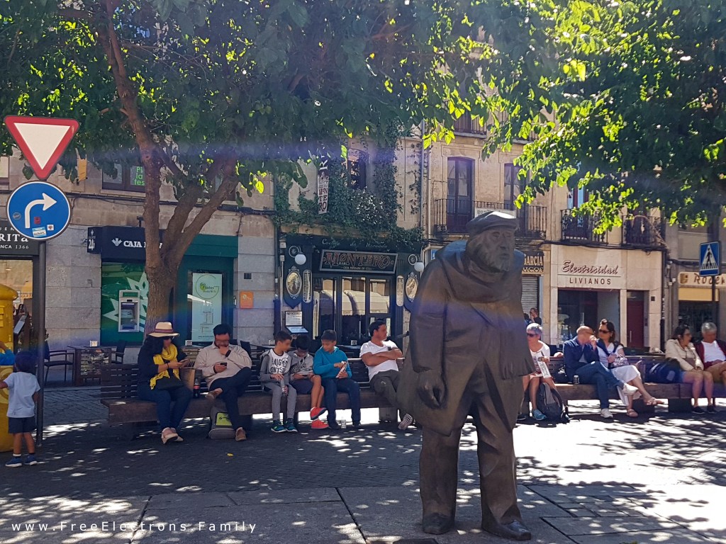 Monument to The Poet Agares by Agustin Casillas is a two-meter tall bronze statue in Plaza del Corrillo where the poet spent much of his time during his years in Salamanca, writing, editing, selling his books in this plaza.