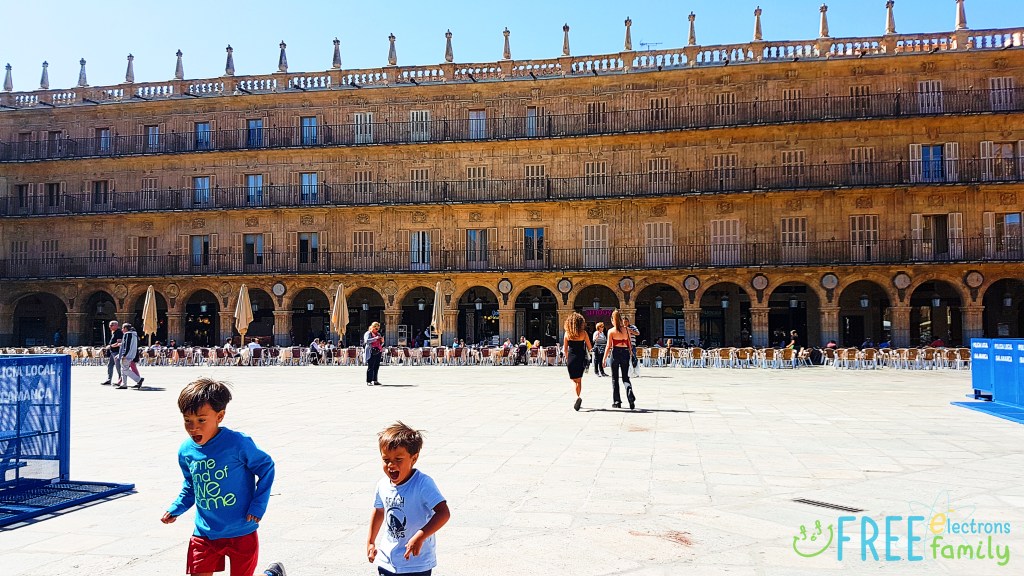 Candies and icecream-fueled run around at Plaza Mayor. This city is pretty much a college/university town with all kinds of Baroque buildings. . . I wonder, when the boys become university student, if the boys would keep the tradition of running wild in wide open plazas.