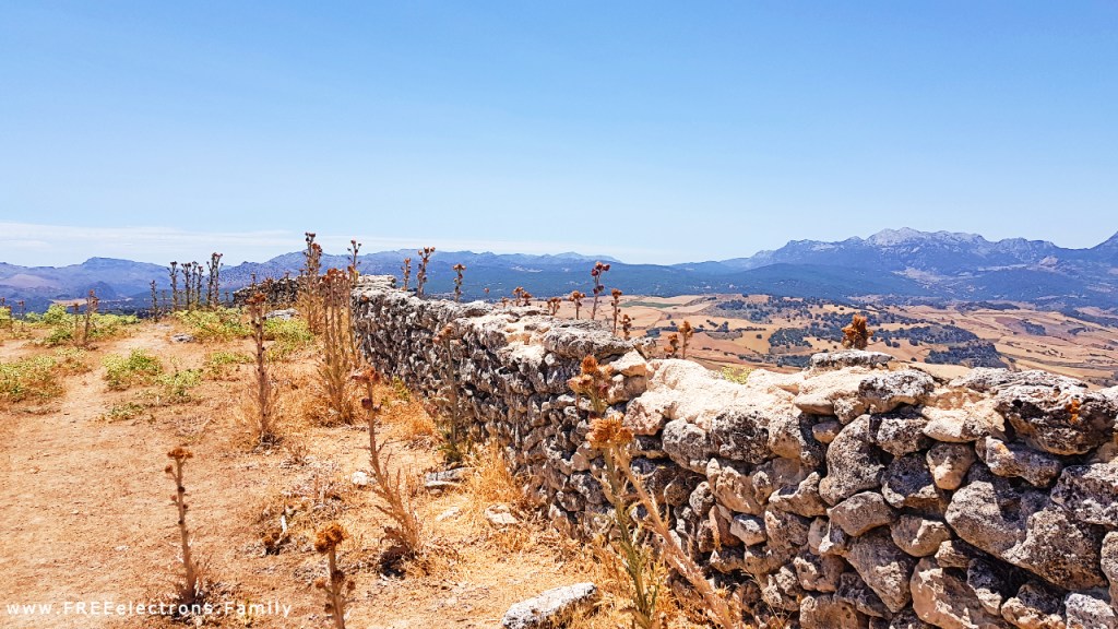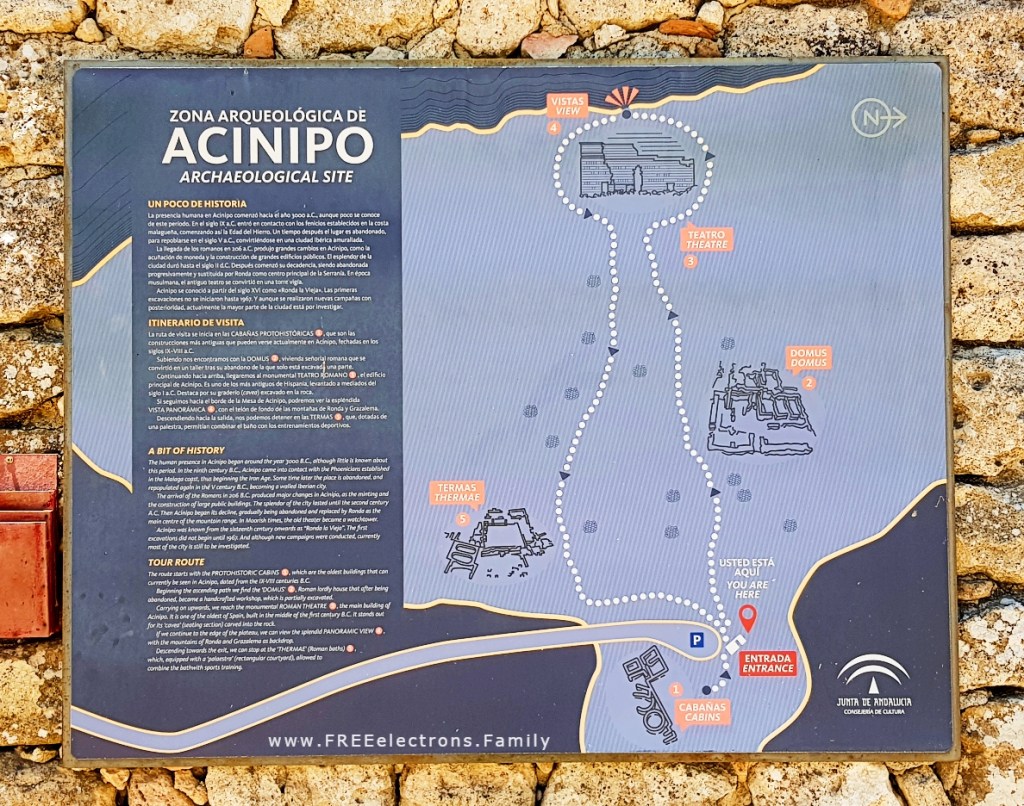 The day after visiting “set Anil, The libuse Killers bodegas” [note another brilliant AI-generated transcription for “Setenil de las Bodegas”] and , of course, more swimming pool time for the kids, we rushed to the Roman Ruins of Acinipo in southern Spain–about 15 minutes away. So this settlement is like, how should I put it?, a retirement home on top of a hill founded by retired soldiers of Caesar’s Rome.