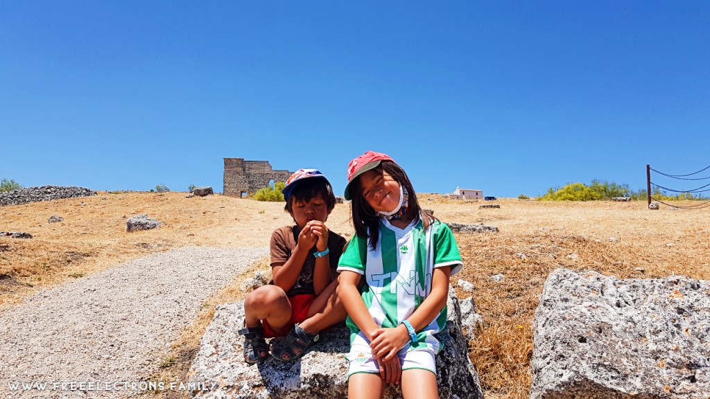Anyway, enough about that. Late check-out was allowable at Camping El Nogalejo because pretty much there was nobody there. Really, not a busy place. The boys wanted to stay in the pool with their friends. We finally got out rushing it at 1:30 or something that, for a 15-minute rush drive to see the ancient “Roman ruins of us at Sea nipple” (this another great AI-generated transcription for “Roman ruins of Acinipo”).
