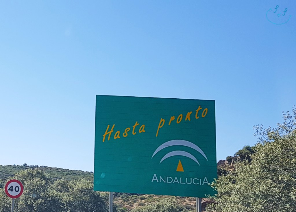 Then, por fin!, we cross the Andalusian border with the province of Castilla La Mancha–you know, the dusty land of Don Quixote?!?!?. We’ve finally left our adopted motherland, about 70 km or 1 hour to destination.