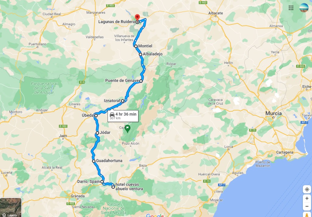 This is “a very pleasant drive,” my wife says. (We were on A-401 La Carolina-Guadix 2-lane both ways motorway between Guadix and Ubeda).