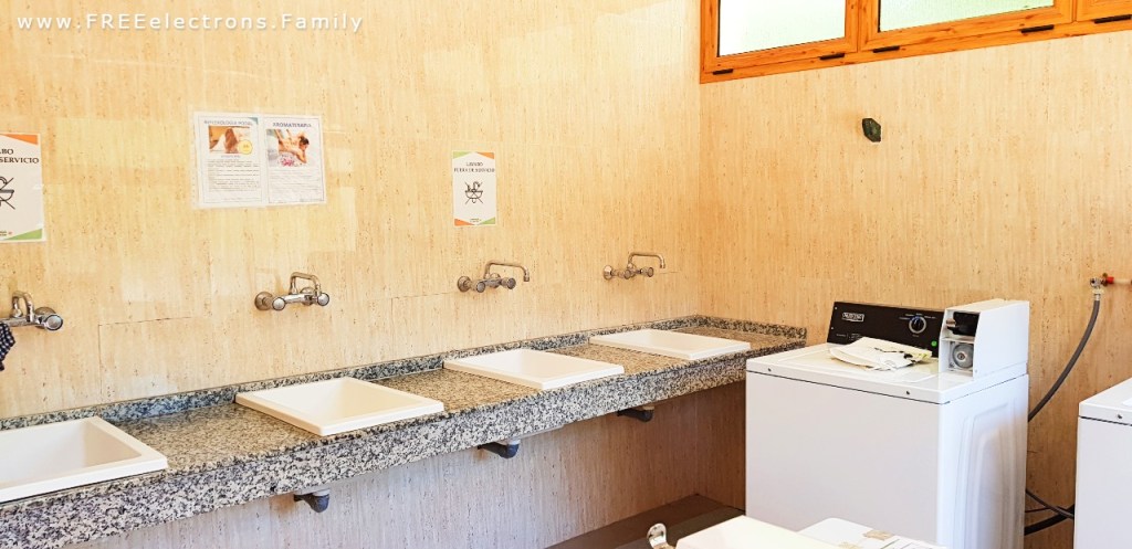 Enclosed Dishwashing and clothes-washing areas are sufficiently clean in the same bathroom area. Let me repeat that, ENCLOSED! This is a unique feature because many campsites have the washing areas OUTSIDE of the bathroom.