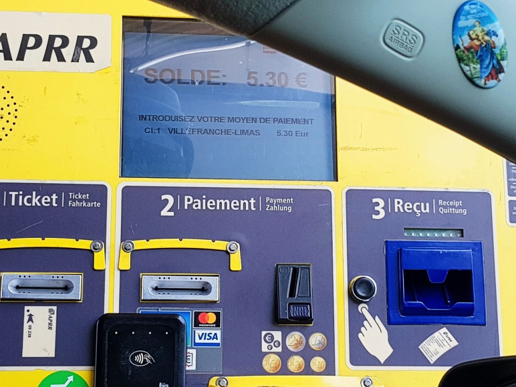 Pay toll exit in Macon. 5.30. Paid a total of €42.10 for 3 tolls (5.30, 27.40 and 9.40 at third toll)
