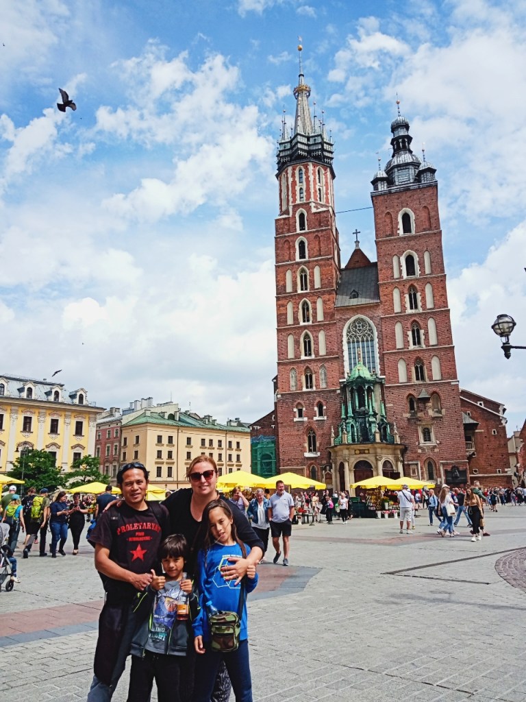 A mandatory “family selfie” (in case I go senile) at Krakow’s main market square, with Saint Mary’s Basilica in the background.